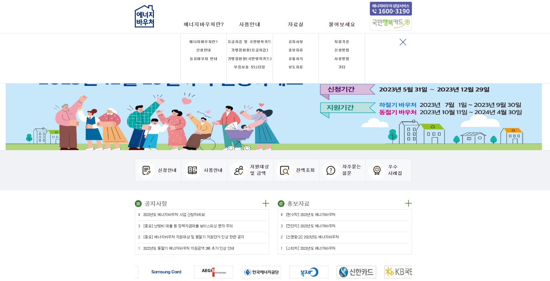 에너지 바우처 신청은 2023년 5월 31일부터 2023년 12월 29일까지 받고 있습니다. 대상이 되시는 분들께서는 기한 내에 신청하여 올해 여름 및 겨울에 바우처를 지원받아 이용하실 수 있습니다.